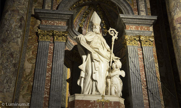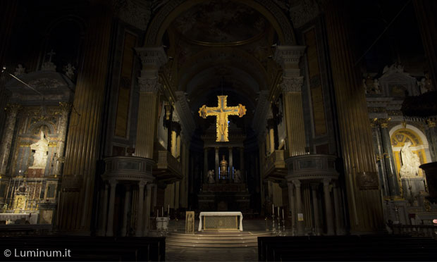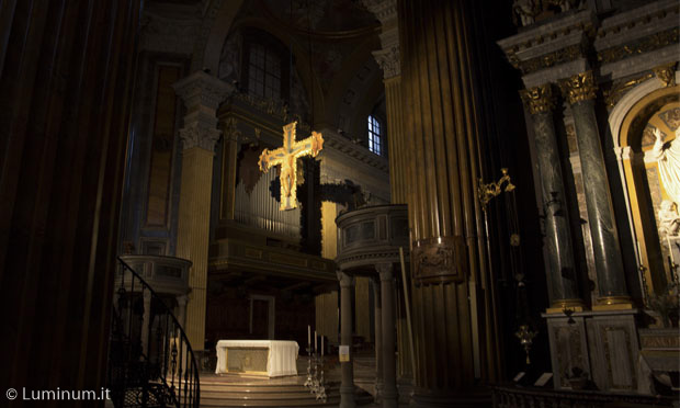 Opere di tale prestigio, ma così differenti, richiedono infatti illuminazioni differenziate ( sia come potenza, come colore della luce e forma della luce), richiedendo apparecchi di alta qualità e caratteristiche tecniche ineccepibili. Il progetto è stato studiato in sostituzione ed ottimizzazione del vecchio impianto di illuminazione, a scopo di tutelare l’integrità dei beni artistici e valorizzare l’area di celebrazione Particolare attenzione è stata rivolta inoltre all’ampiezza dei fasci ( beam angle ) delle ottiche, in modo da evitare con fasci troppo ampi di creare un effetto di abbagliamento sul celebrante.